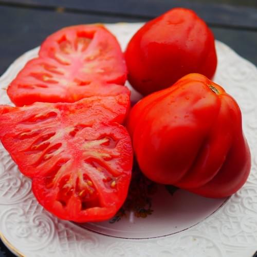 Deeply pleated, bold & beautifully sculpted — this heirloom sets large, triangular (pumpkin-like) fruit in rich pink-red tones, with scalloped edges and hollow interiors ideal for stuffing. The flavor is sweet and intense, balanced, with a low seed count, making each bite pure. Plants grow indeterminate and vigorous, loving heat, and reliably produce in warm conditions.
